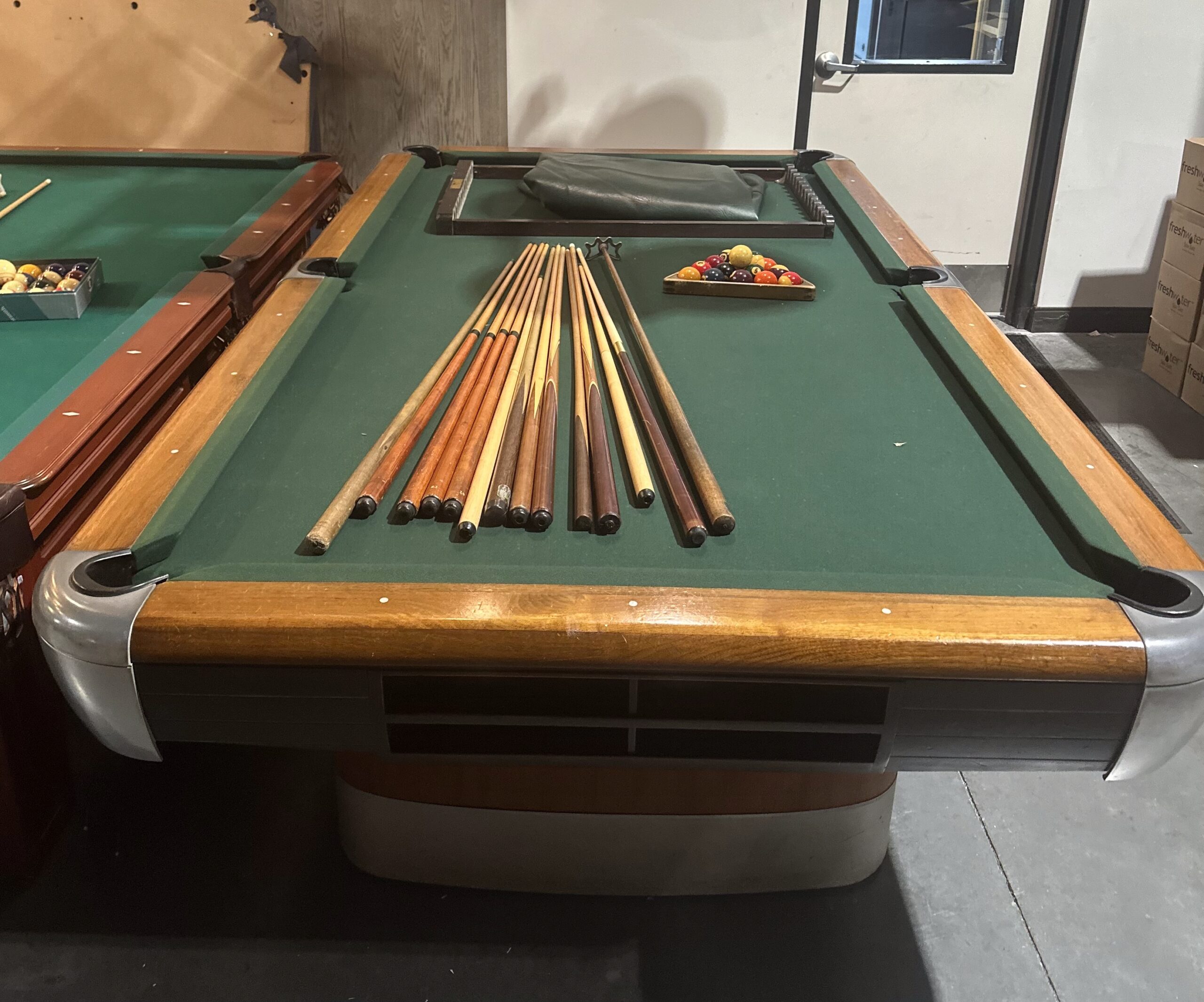 Step up your game room with our selection of pre-owned pool tables at Everything Billiards & Spas. Each billiards table is a showcase of quality, having been thoroughly inspected and serviced by our expert team to meet our stringent standards. Our pre-owned section offers incredible savings, allowing you to own an exceptional pool table without the new product price tag.